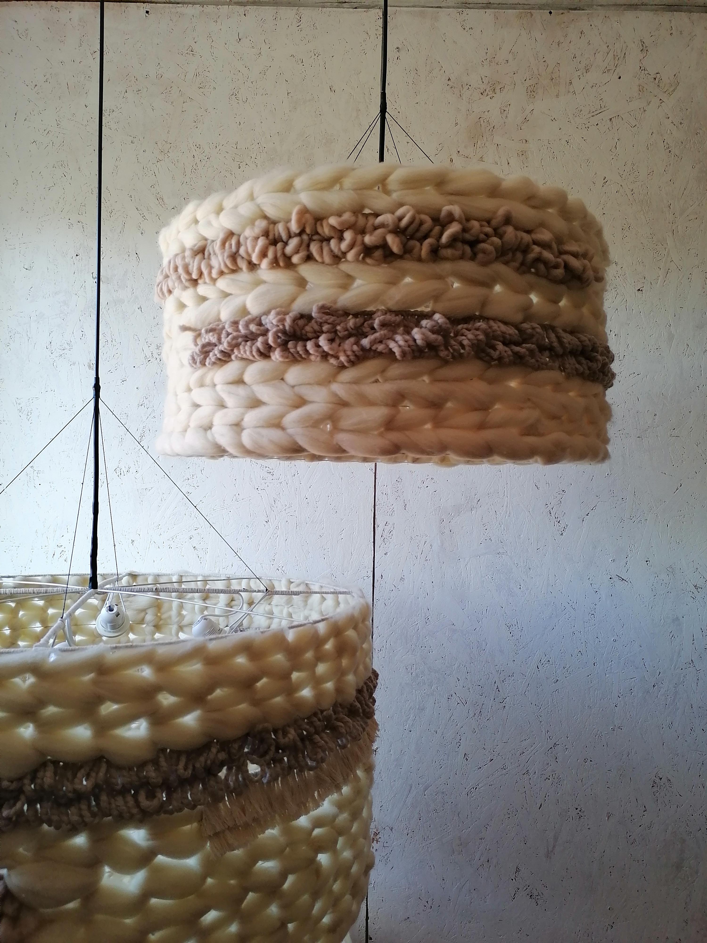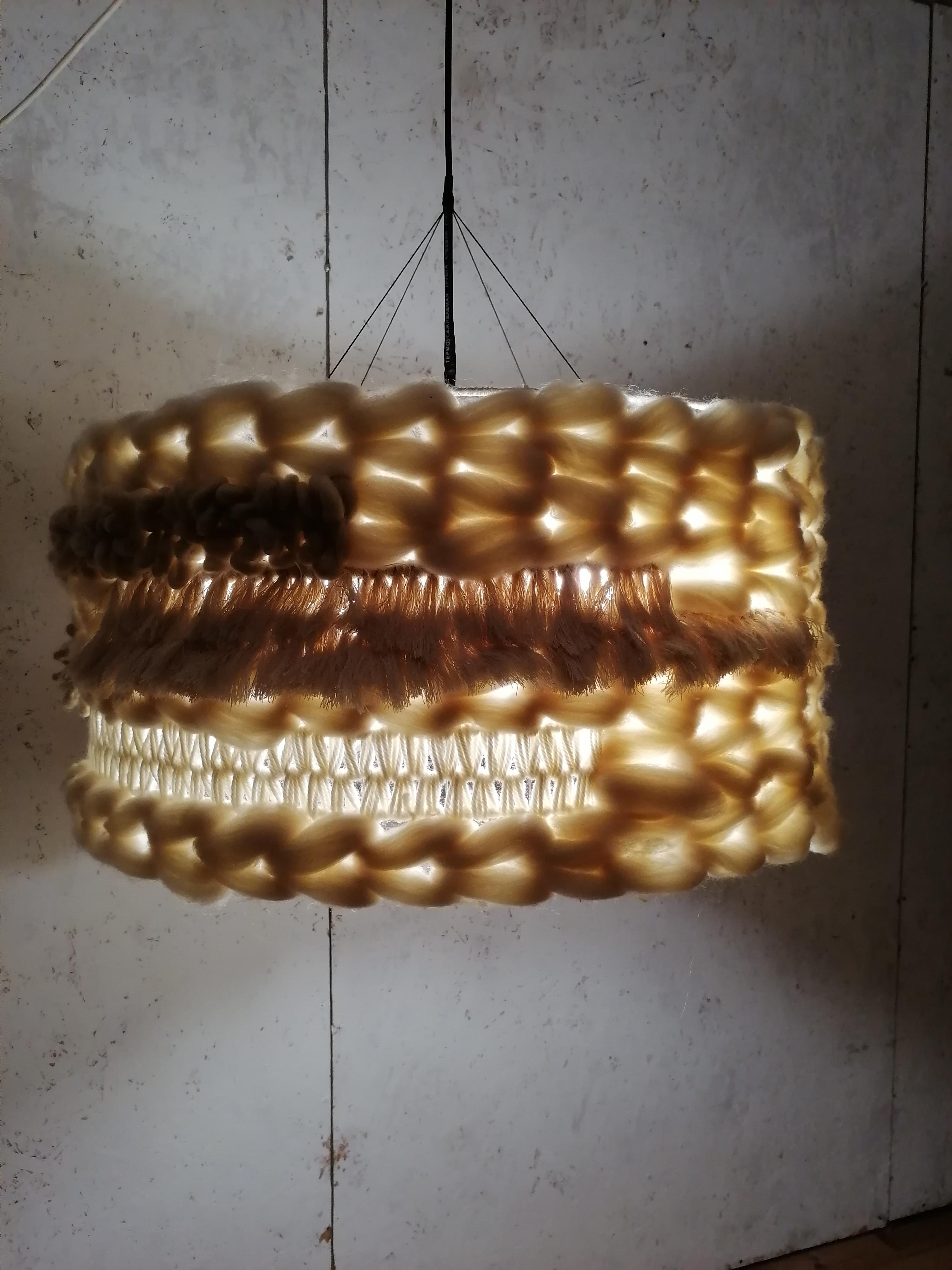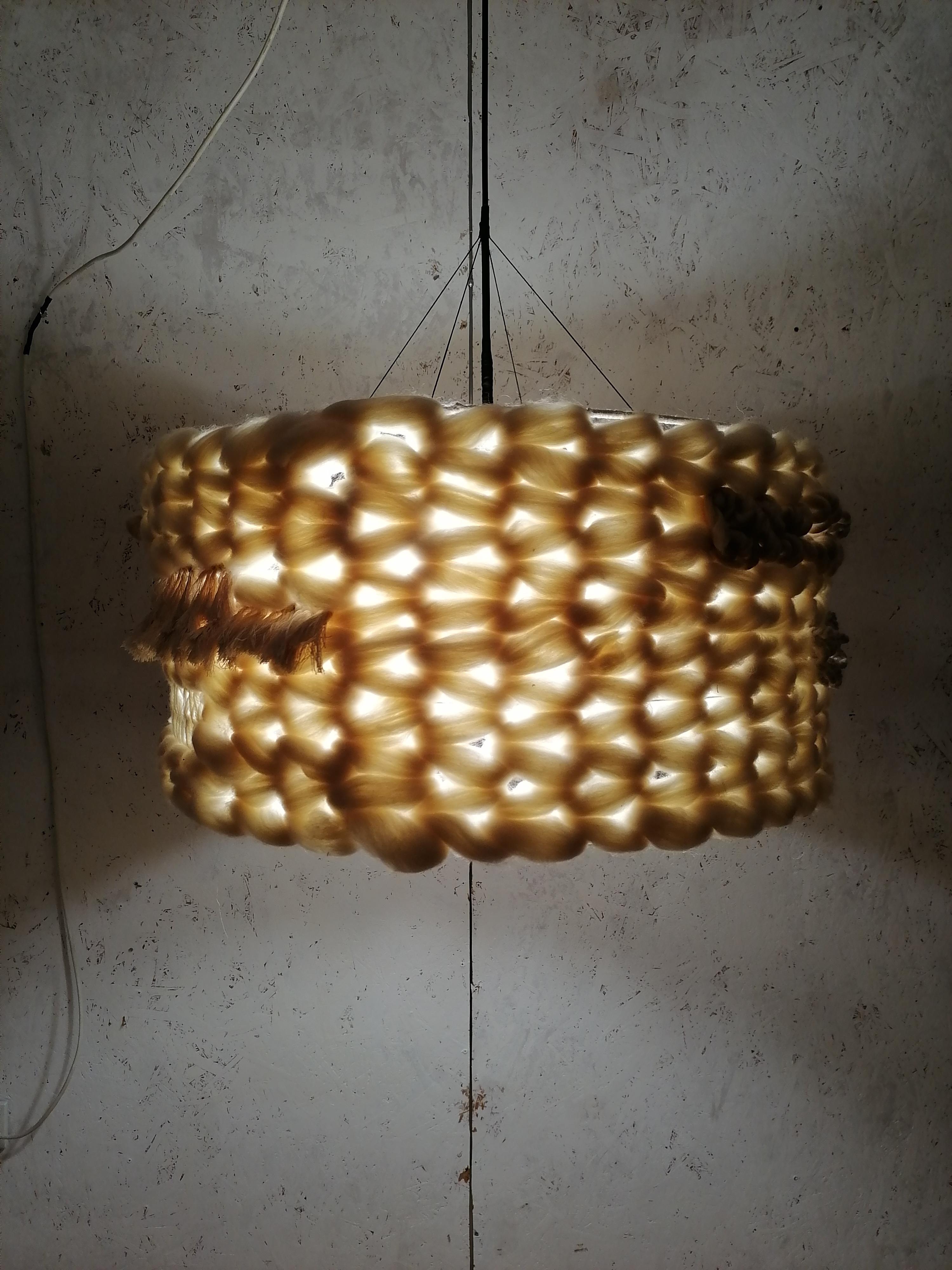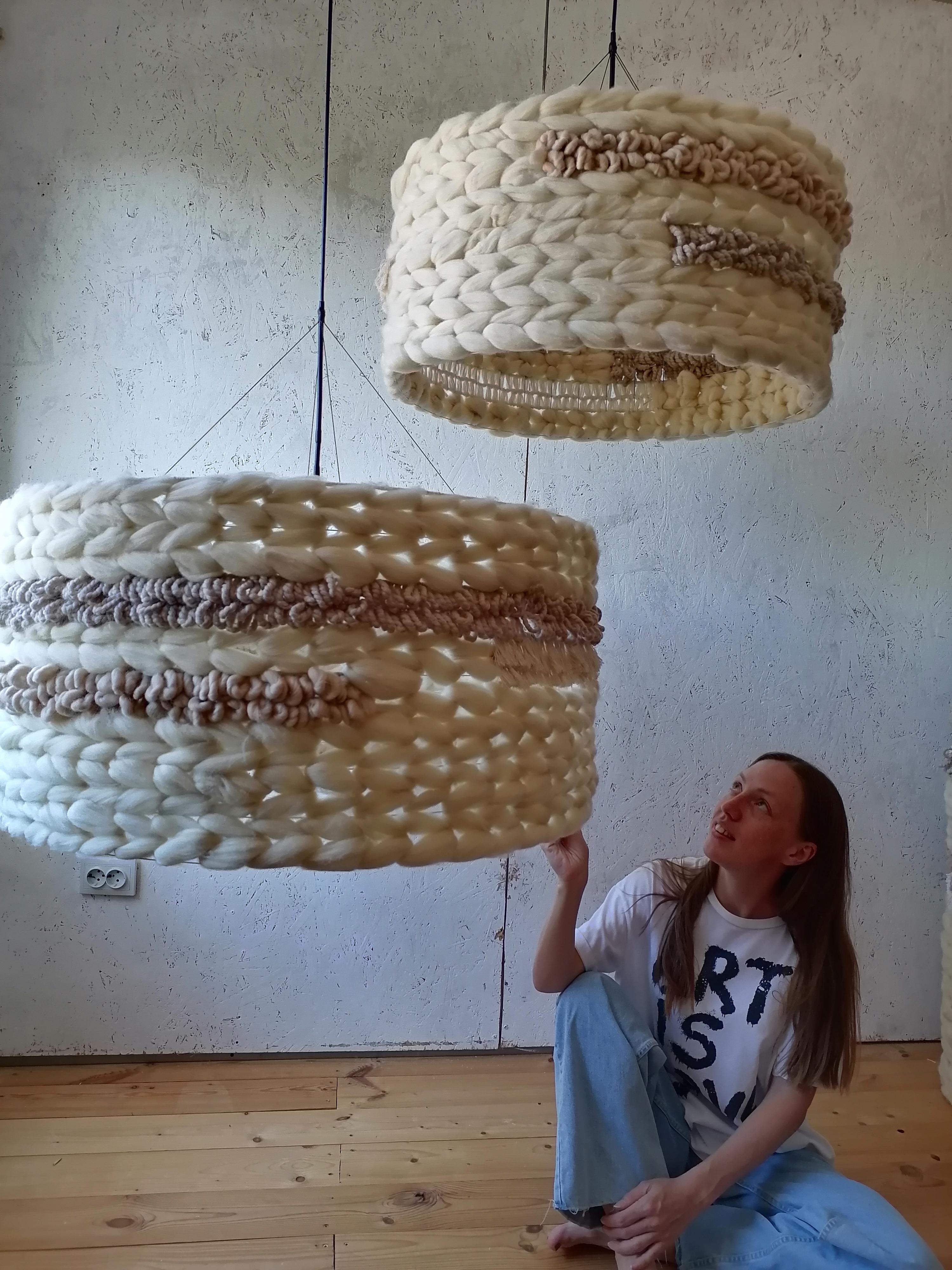 Абажур выполнен на заказ. Возможен повтор Диаметр 60см, высота 30см Техника выполнения : Ткачество Материал: меринос, хлопковый шпагат, шерстяная пряжа Отверстия под 2 лампочки, но можно изменить. Абажур даёт очень мягкий свет и красивые тени Данная цена является ориентировочной, за 1 единицу товара, конечную стоимость изделия вы можете узнать после уточнения размеров, цвета, формы и материалов используемых при изготовлении. Данный товар изготавливается под заказ, может быть выполнен в другом цвете и размере, уточняйте.