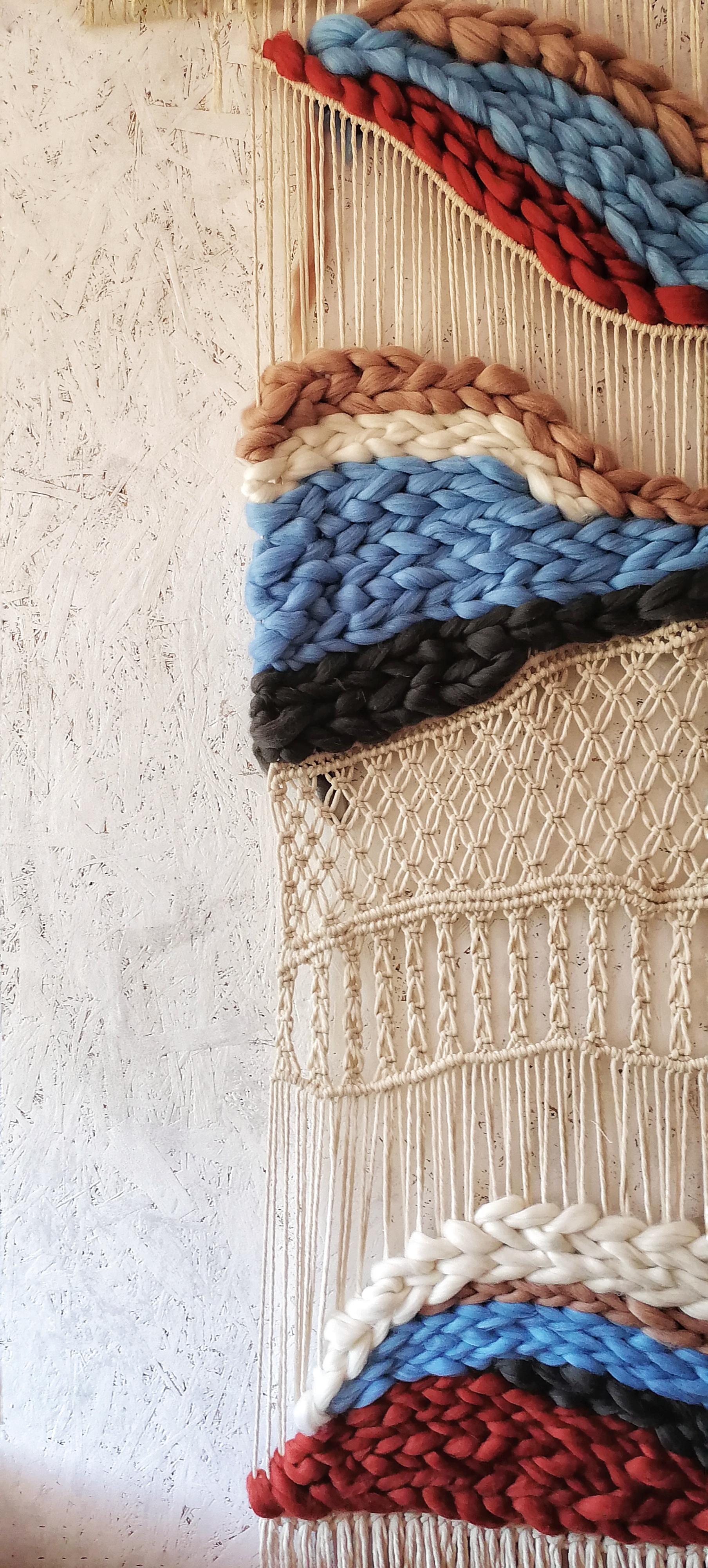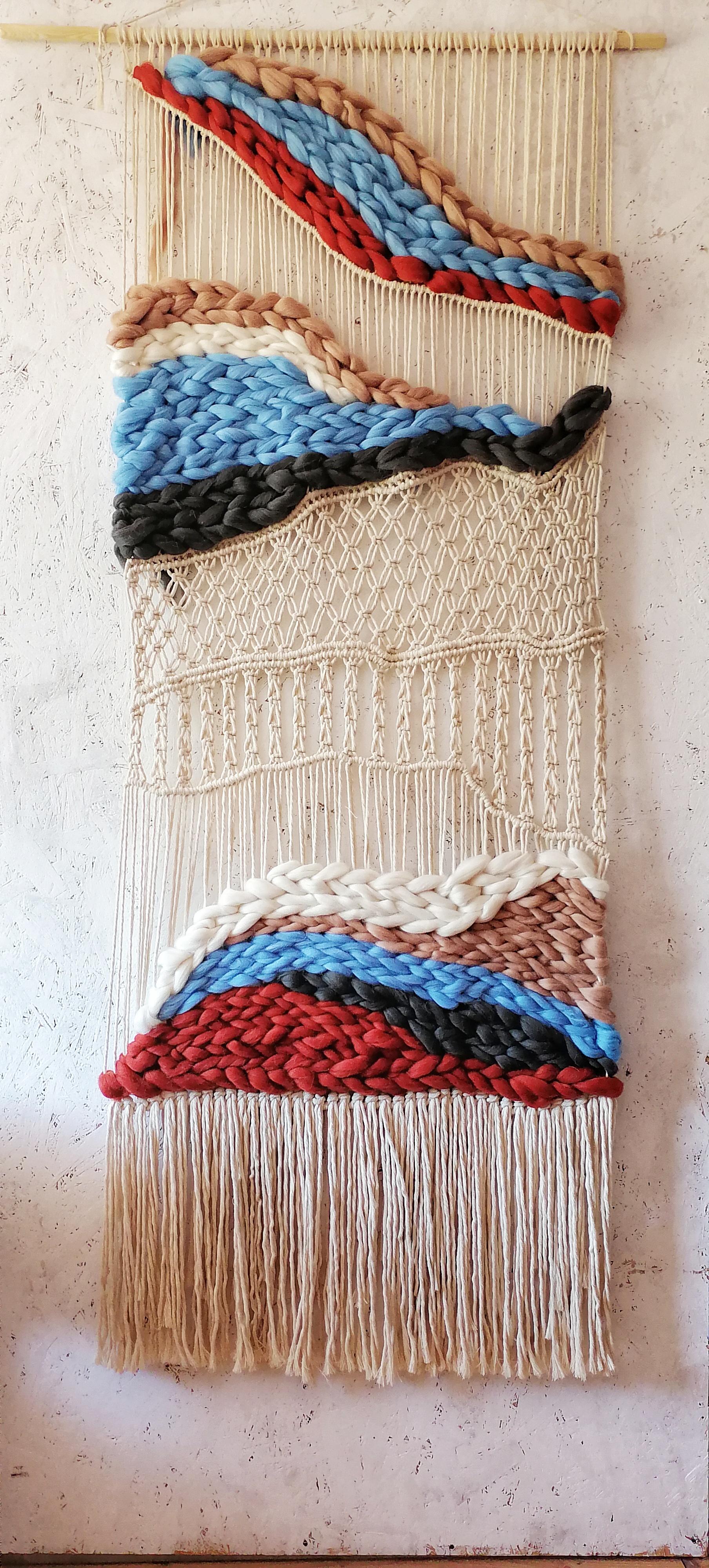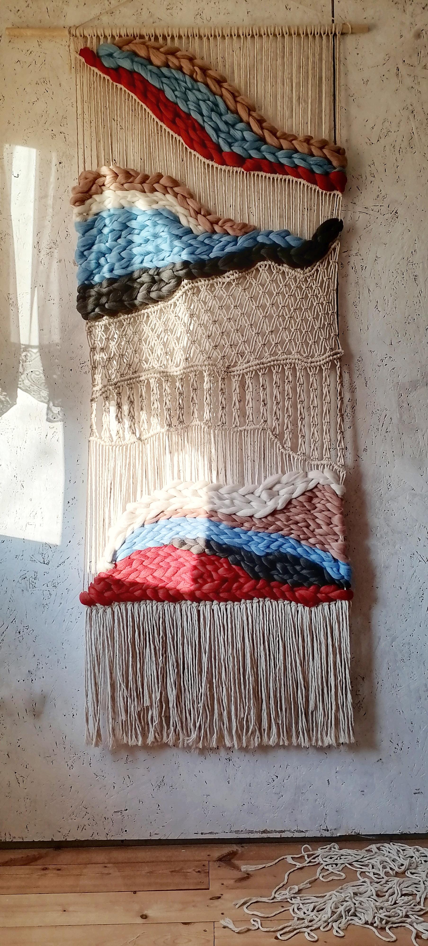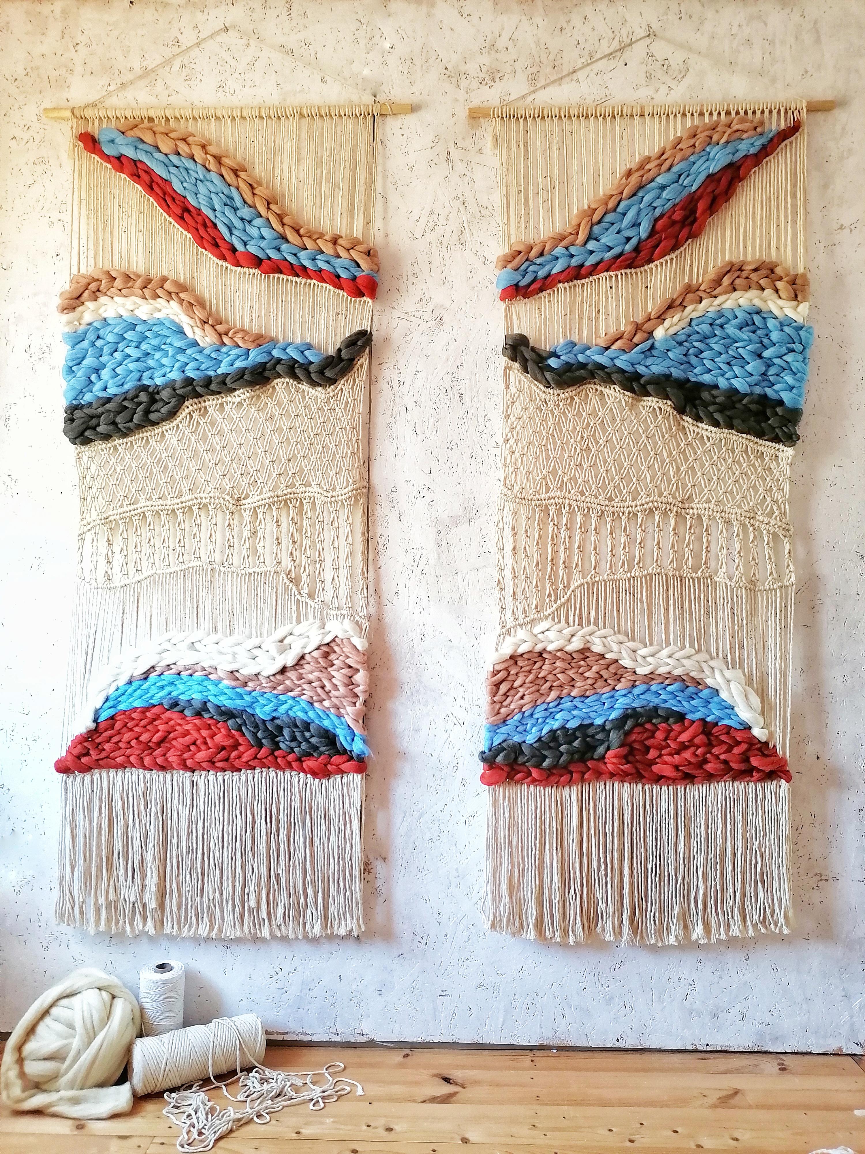 Панно выполнено в технике макраме +ткачество. Материал: хлопковый шпагат+ мериносовая шерсть. Размеры одного панно 75*200см Цена указана за одно панно Данная цена является ориентировочной, конечную стоимость изделия вы можете узнать после уточнения размеров, цвета, формы и материалов используемых при изготовлении. Данный товар изготавливается под заказ, может быть выполнено в другом цвете и размере, уточняйте.