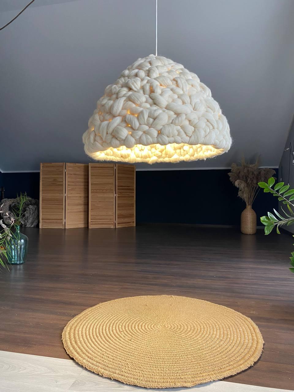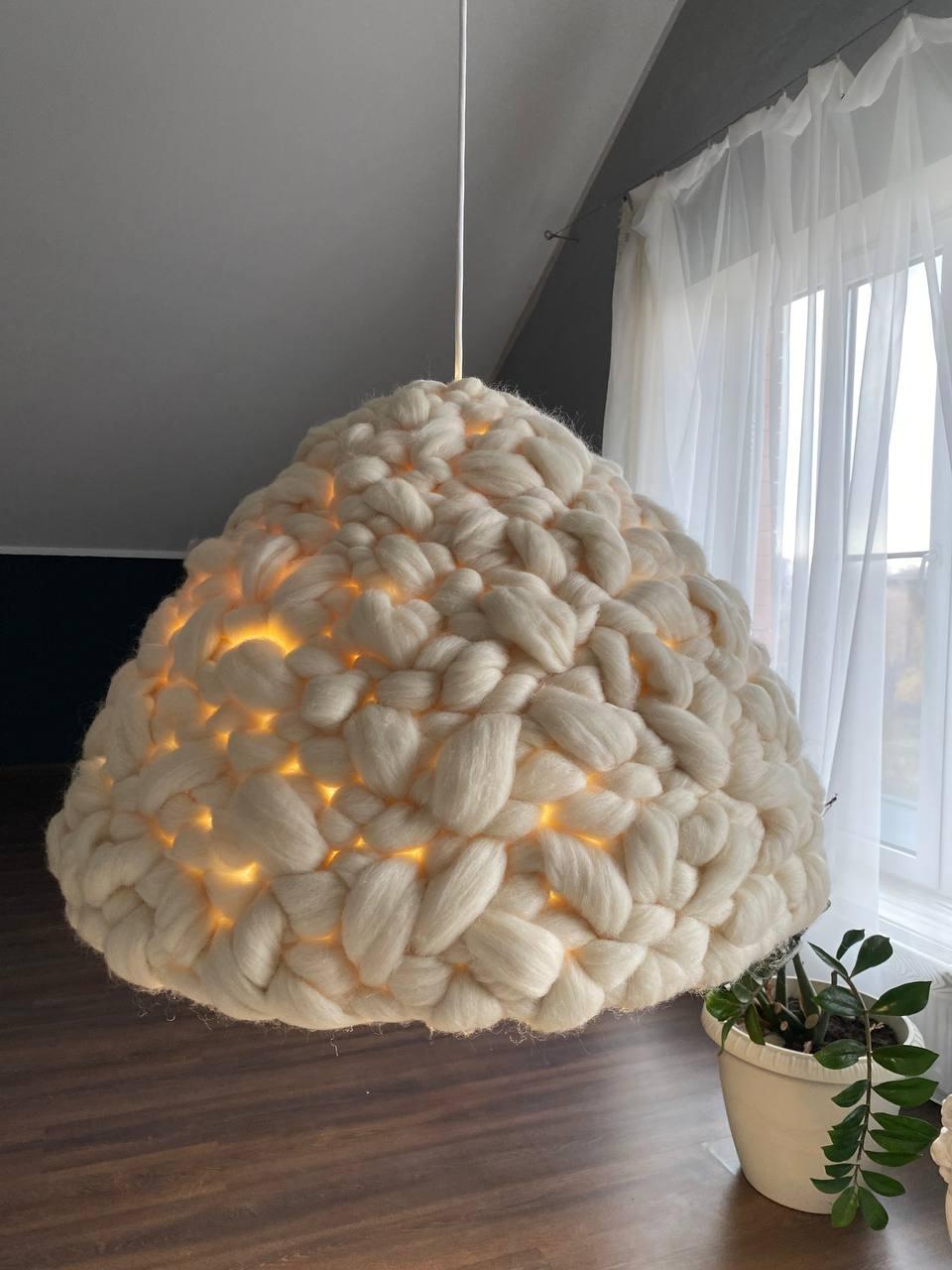 Абажур выполнен из шерсти мериноса. Крепление под три патрона Е27. Электрика в комплект не входит, но можем добавить. Абажур даёт очень красивый и мягкий свет. Размеры : 67*45см Вес 4кг Данная цена является ориентировочной, за 1 единицу товара, конечную стоимость изделия вы можете узнать после уточнения размеров, цвета, формы и материалов используемых при изготовлении. Данный товар изготавливается под заказ, может быть выполнен в другом цвете и размере, уточняйте.